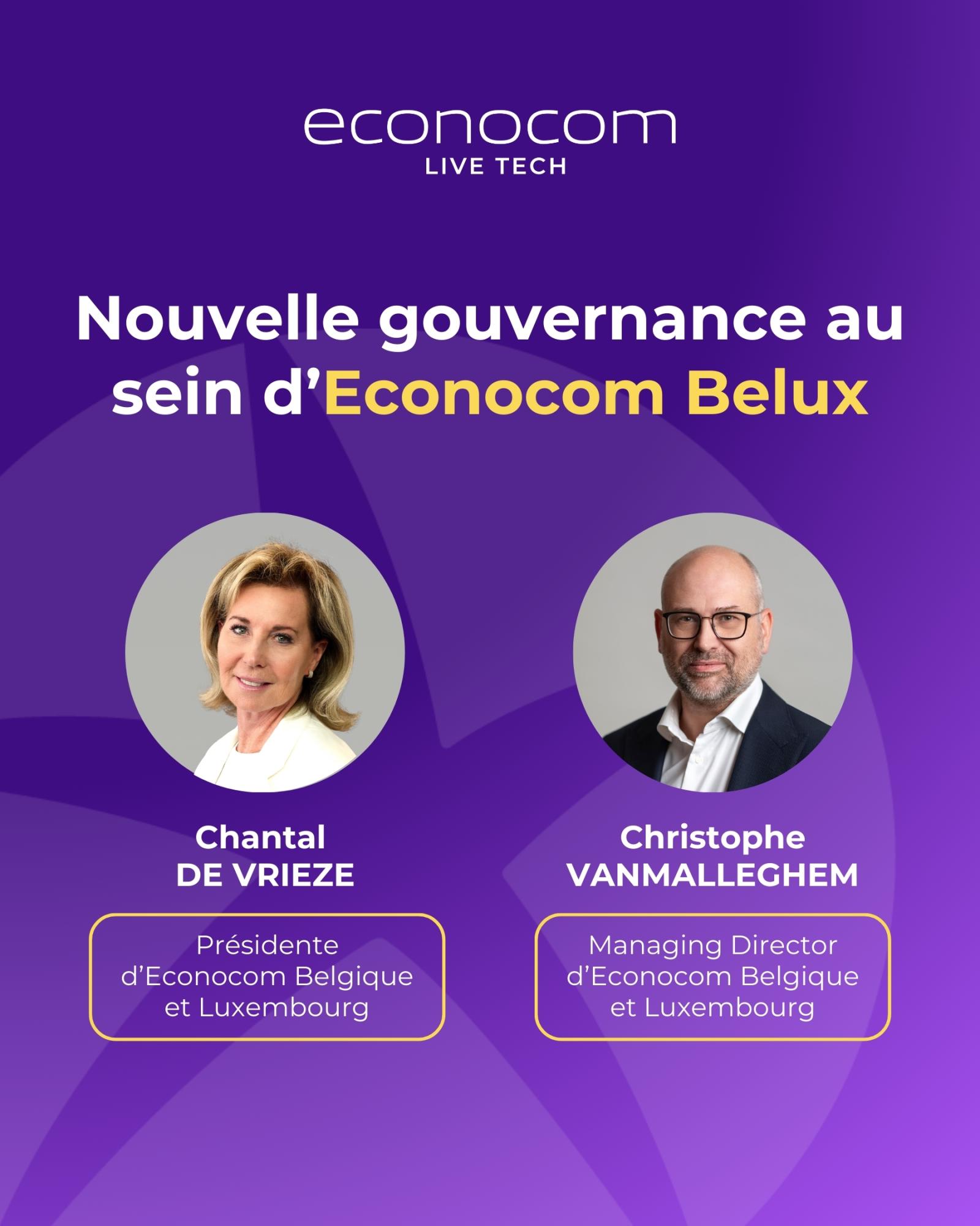 Chantal De Vrieze a été nommée Présidente d'Econocom Belgique et du Luxembourg. Le 1er avril 2026, elle passera le relais à Christophe Vanmalleghem, nouveau Managing Director de la succursale.